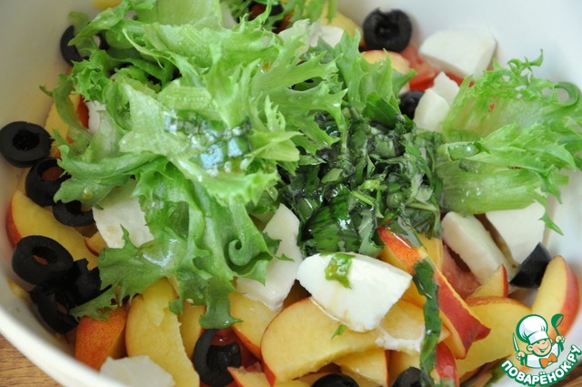 Свежий овощной салат с нектаринами, помидорами и моцареллой