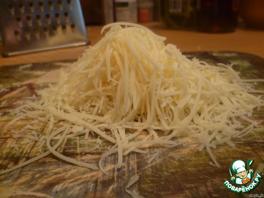 Натрем сыр на мелкой терке. Добавляем в блендер. Снова взбиваем.