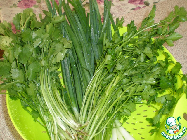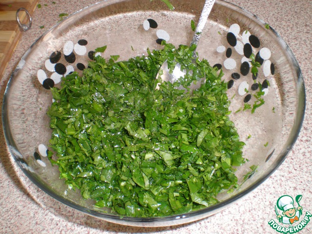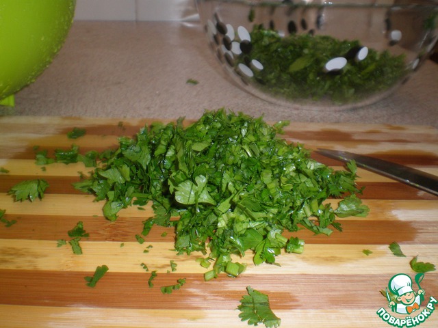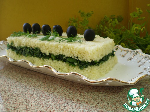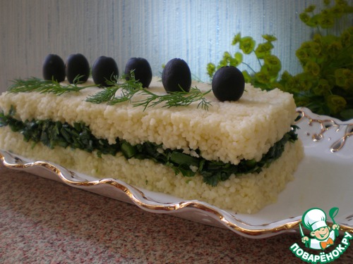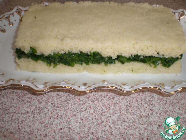 Сверху накроем зеленью и вторым слоем кус-куса.