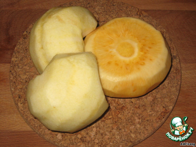 А в это время, пока тыква принимает медово-прохладительные ванны, мы чистим репу и яблоки.