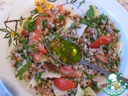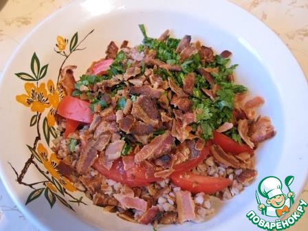 Добавить к гречке помидоры (семена удалить), нарезанные полосками.