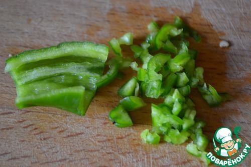 Мелко измельчить перчик чили. Болгарский перец - аналогично.
