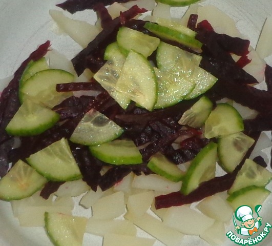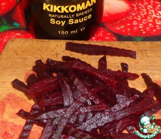 С помощью острого ножа нарезать свеклу длинной соломкой. Я использовала нож с узором для резки теста.