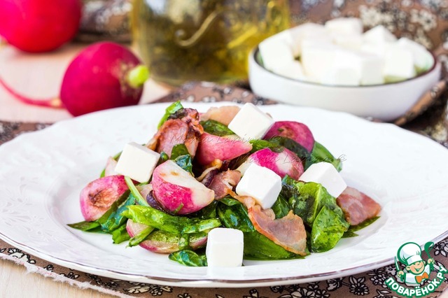| Да-да, жареная редиска! На первый взгляд, может показаться, что это дикость. Но если задуматься практически все корнеплоды мы жарим, варим и запекаем, а чем редиска хуже? При тепловой обработке она меняет вкус и становится более мягкой. В дополнение к ней я добавила свежий шпинат и обжаренный бекон! Если вы вдоволь наелись свежей редиски и вас тянет на эксперименты, обязательно попробуйте этот рецепт, он приятно вас удивит! |
