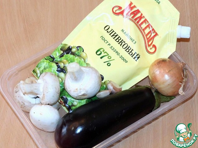 | Салат калорийный, но не тяжёлый, несмотря на то, что баклажаны и шампиньоны обжарены, а в соусе присутствуют орехи. Овощи нужно жарить на самом минимальном количестве масла, но чтобы они в тоже время не были сухими. |