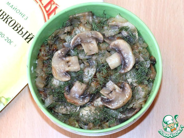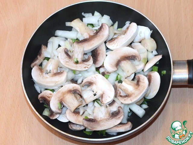 Обжарить грибы в небольшом количестве растительного масла вместе с луком.