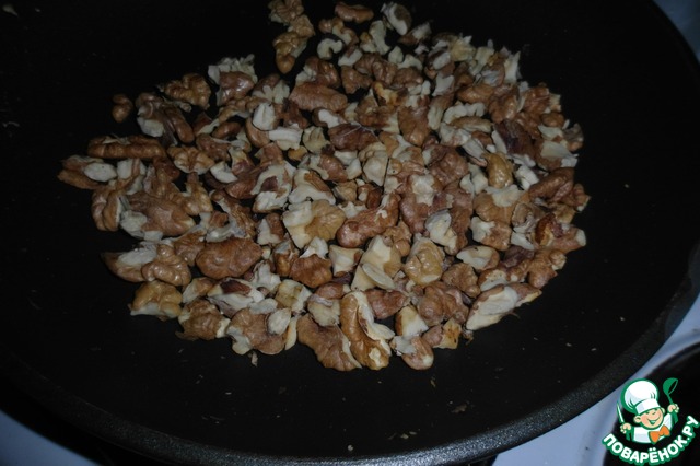2. Покрошим на сковородку орехи и прожарим их до коричневого цвета.