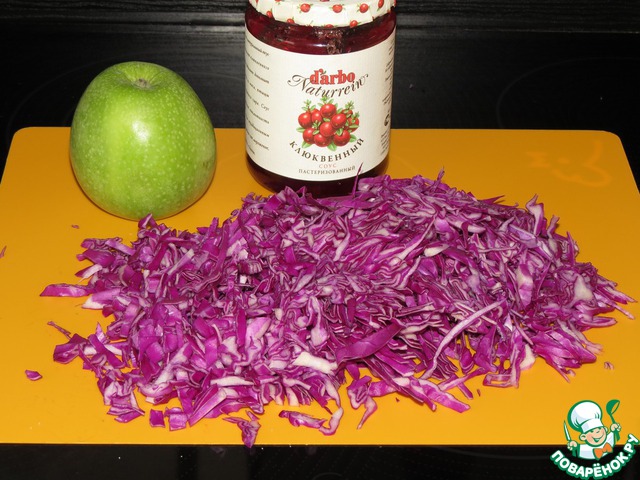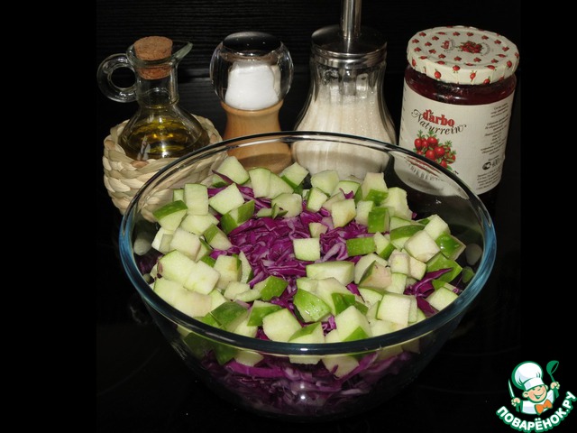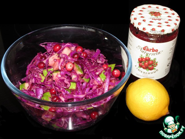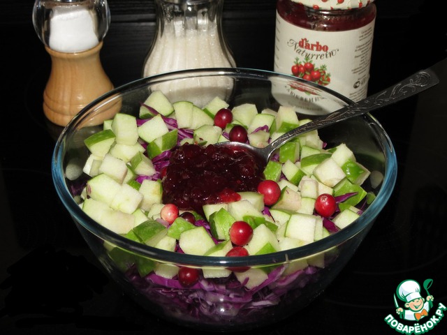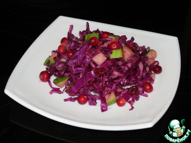 Салат из краснокочанной капустыс яблоками и клюквенным соусом
