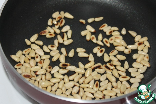 Перед подачей посыпать кедровыми орешками и листиками мяты