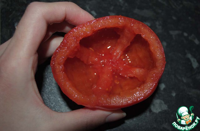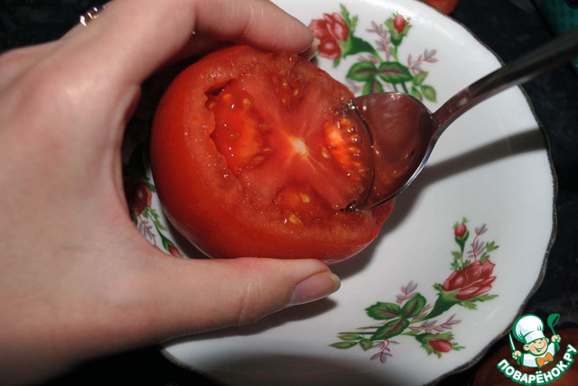 Удаляем мякоть помидора.