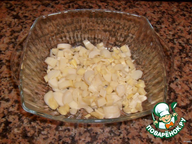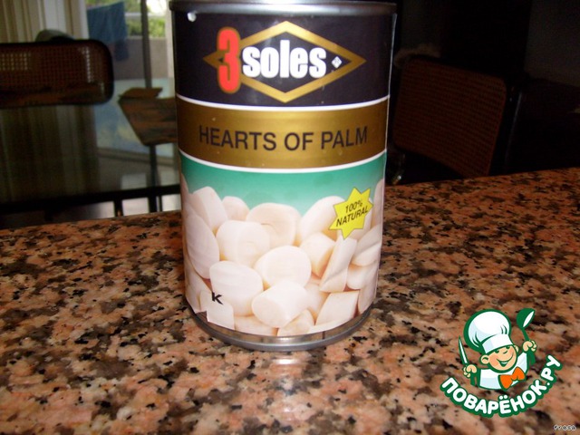 Первым делом нужно замариновать лук на 3 -4 часа, можно на ночь, так будет еще лучше. Теперь про пальмито. Пальмито это молоденькие отросточки пальмы(по крайней мере так на банке написано)маринованные в банке, вкус напоминает соленый огурец, поэтому смело можно заменить пальмито на огурцы. Ну вроде бы все... Приятного аппетита! Да, кстати кухня это Венесуэльская.