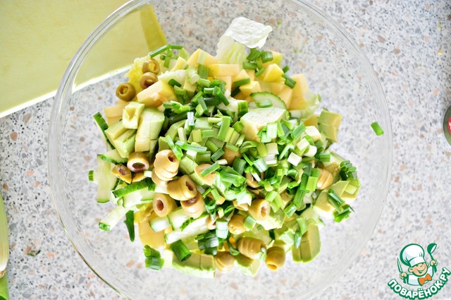 Моем, чистим, удаляем косточку у авокадо Нарезаем кубиками.
