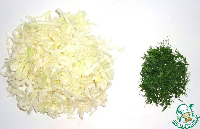 Белокочанную капусту тонко нарезать или нашинковать на крупной тёрке, зелень укропа мелко нарезать.