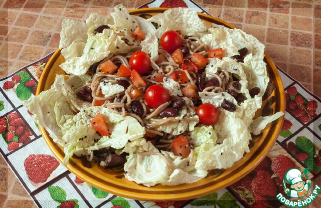 Салат с пекинской капустой, фасолью и гречневой лапшой