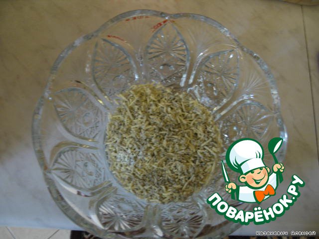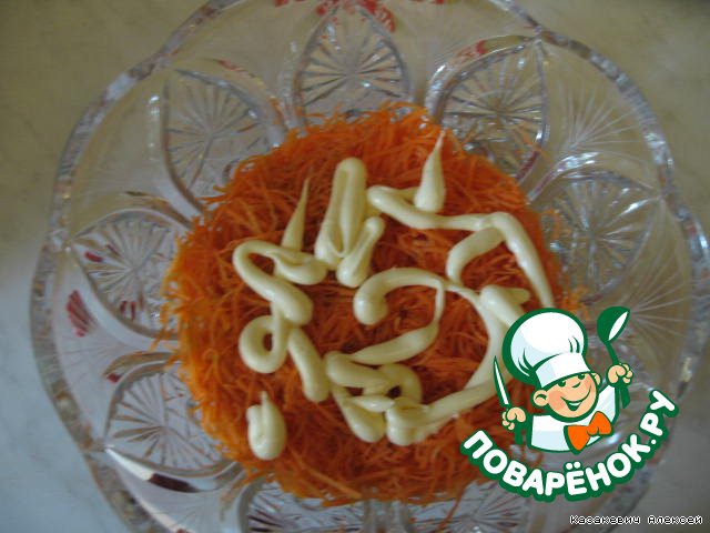 Морковь, свеклу, ядра грецкого ореха, желтки и белки ОТДЕЛЬНО натираем на терке.