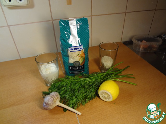 Пока варится рис, порубить укроп, порезать редис, оставив 1 шт. для украшения, мелко порубить зубок чеснока, выжать лимонный сок.
