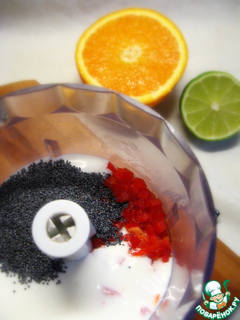 Туда же (в блендер) выложить йогурт и мак.