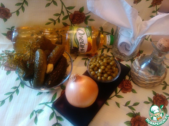Режем кубиками огурчики и мелко-мелко рубим лук