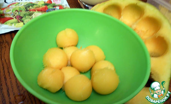 Уложить по 3-4 йогуртовых шарика в каждый салатник, очень осторожно, стараясь не повредить оболочку.