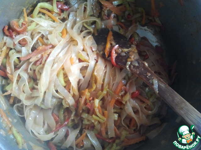 Покамест наши овощи тушатся, вскипятим воду для нашей фунчозы.
