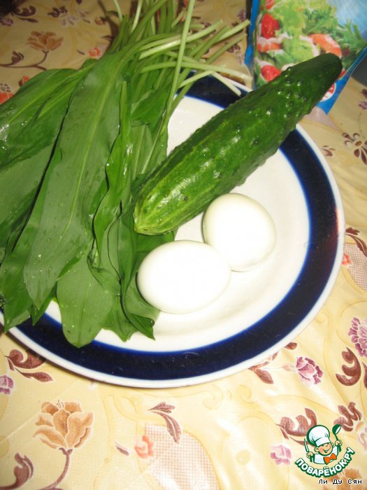 Вымыть листья черемши и огурец. Сварить яйца. Очистить.