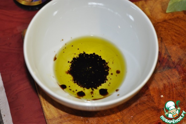 Приготовления соуса. Оливковое масло, растительное, бальзамик, и соус Ворчестершир добавляем соль морскую, все смешиваем, получается эмульсия. Соус должен быть немного кисловатый. все игридиенты смешиваем на свой вкус, кто больше оливкогового, или бальзамика.