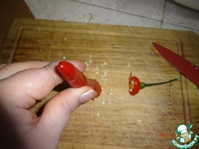 Теперь перчик чили. Покатаем его таким образом буквально секунд 20