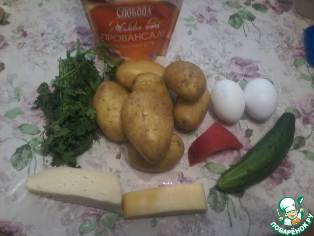 | Красивый салатик... нечего сказать... очень кстати подойдёт для празднования Нового Года. сыр и картошка моё любимое сочетание! |