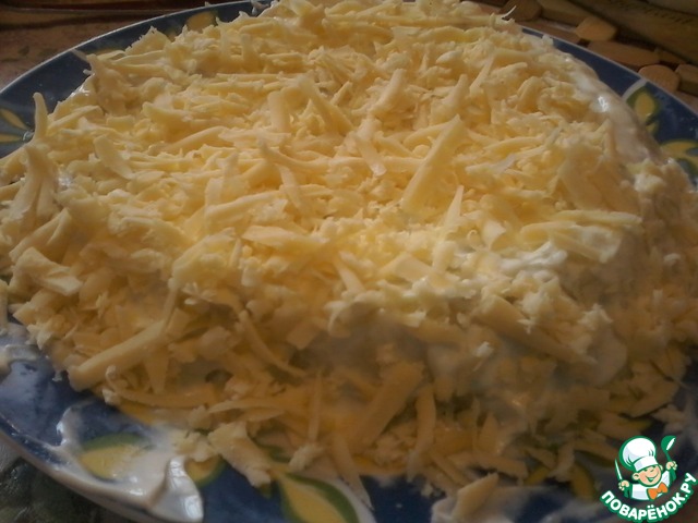 Обсыпаем тёртым сыром.