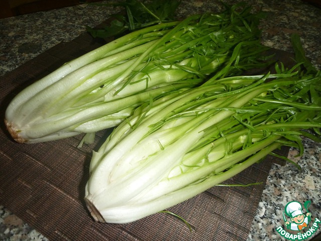 | Puntarelle alla romana. Традиционный римский салат пунтарелле – нарезанные побеги пунтареллы с анчоусами, чесноком и оливковым маслом. В Риме можно купить такой салат поздней осенью и зимой. |
