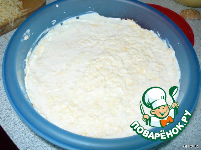 И украшаем тертым на средней терке сыром, даем салату постоять минут 30.