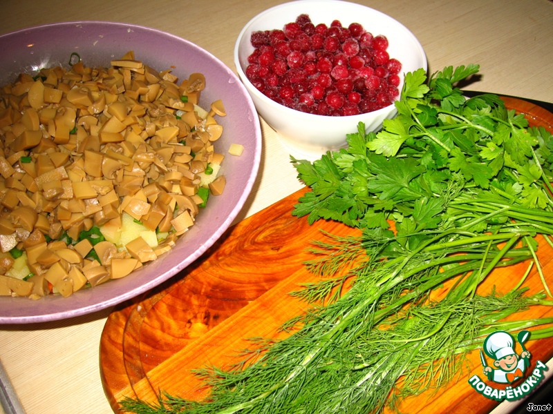 Приятного аппетита!!! Салат с кислинкой от клюквы и грибочков. Очень простой и необычный одновременно!!!