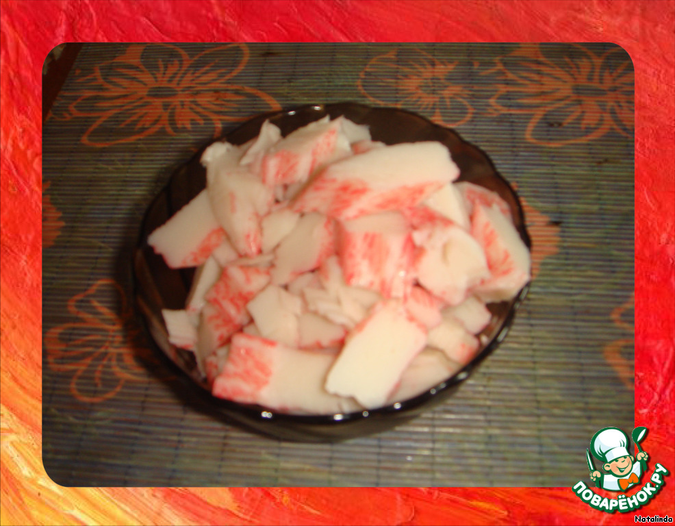 Крабовые палочки режем крупно.