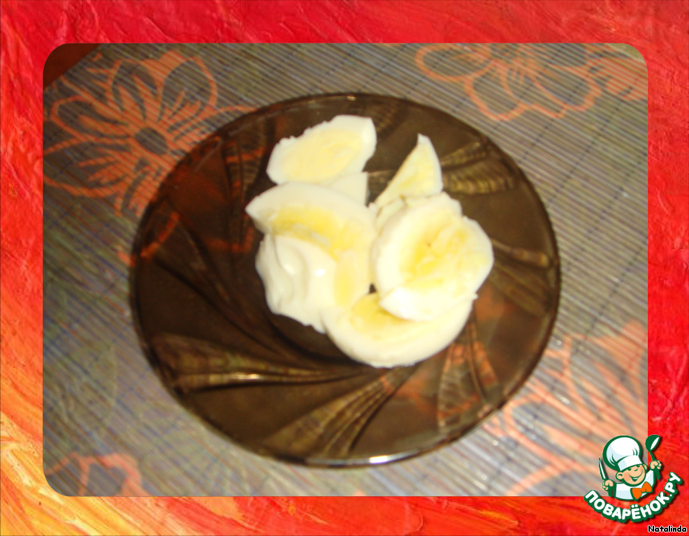 Яйцо режем дольками.