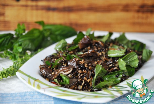 Смешиваем базилик с диким рисом и грибами, сервируем.