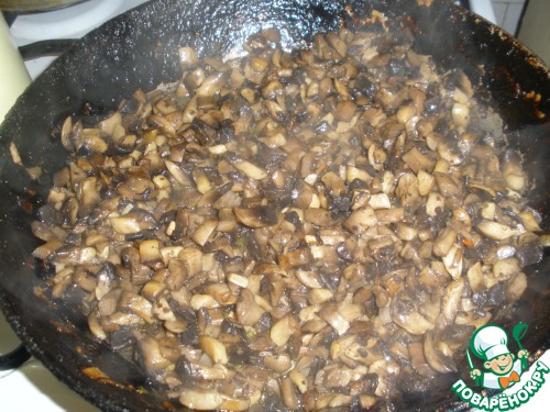 Пока овощи томятся, режем грибы. Грибы обжариваем на подсолнечном масле.