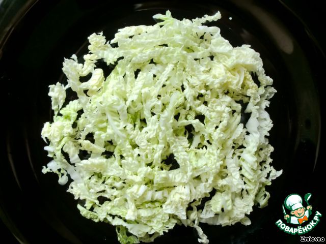 Капусту нарезать тонкими полосочками.