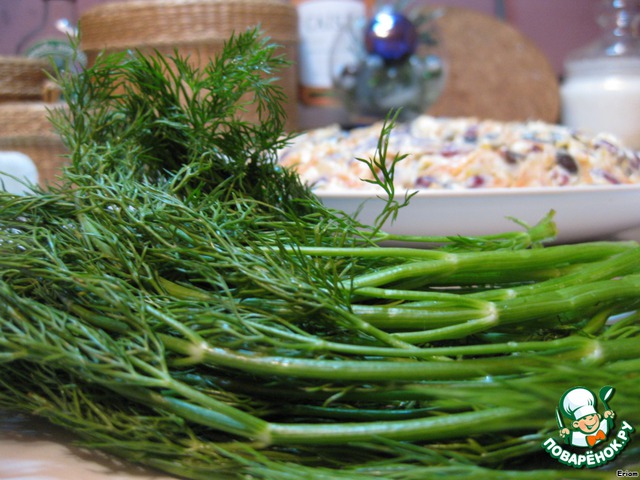 Обложить укропом веночек.
