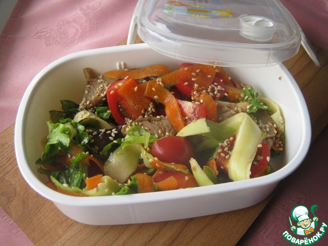 Перекладываем готовый салат в контейнер и берём с собой на пикник.
