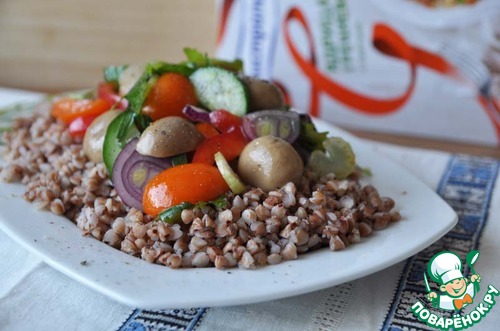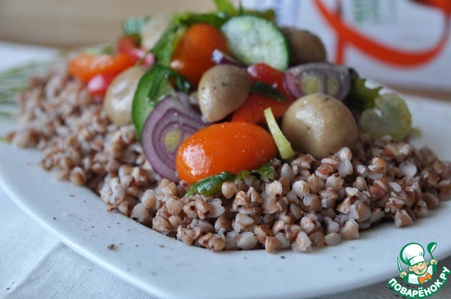 | Гречка с грибами по-купечески - это классический рецепт русской кухни. Хочу предложить вам вариацию на вольную тему - салат из гречки с грибами и овощами. Этот салат - выручалочка в Пост, его можно есть как закуску и как самостоятельное второе блюдо на обед или ужин. |
