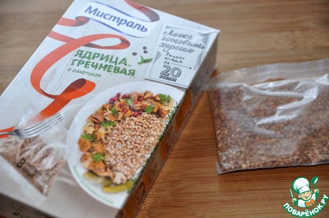 Берём гречку в пакетиках от "Мистраль", кладём в кипящую воду и варим 20 минут.