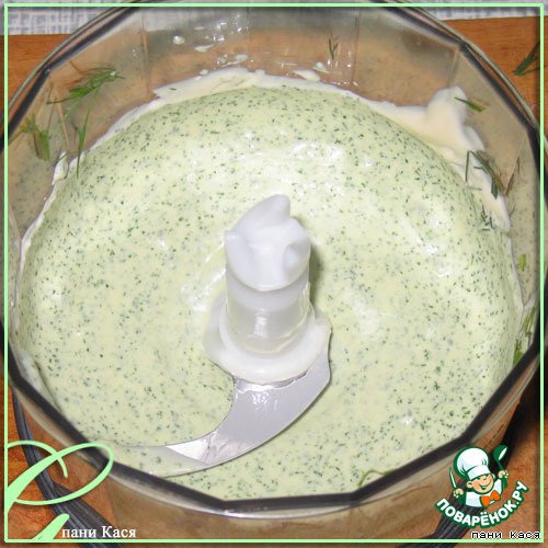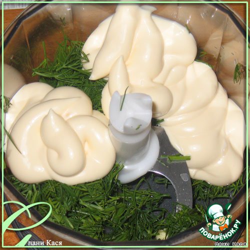 Укроп крупно порезать, перемолоть с майонезом, заправить салат.
