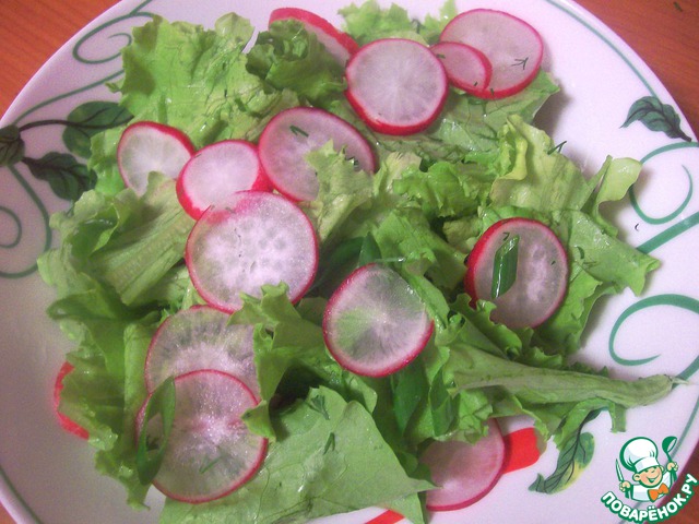 Соединить редиску и салат.