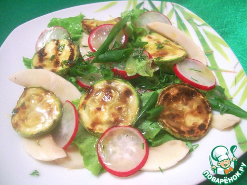 Салат овощной со свежими шампиньонами и кабачком