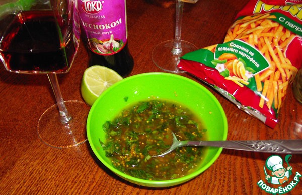Добавляем сок выжатого лайма, немного вина. Хорошо перемешиваем.