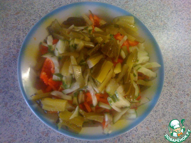 Хочу продолжить начатую мной тему поста. Решил воспроизвести в памяти когда-то давно пробуемый мной салат, моим домочадцам очень понравился! Надеюсь, что вам он тоже придется по вкусу!