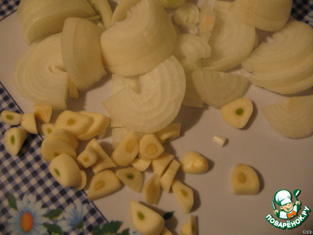 Приготовим все нужные овощи и начинаем. Каждый овощ будем тушить по-отдельности. Режем лук порей, зеленая часть нам здесь не пригодиться, но из нее можно потом сварить вкусный суп (рекламирую сама себя http://www.povarenok.ru/recipes/show/42762/:-D)