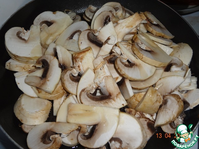 Начинаем обжаривать грибы. Их приправляем солью и душистым перцем по вкусу