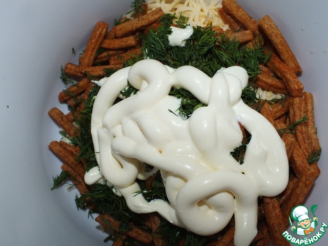 Сырный салат с сухариками