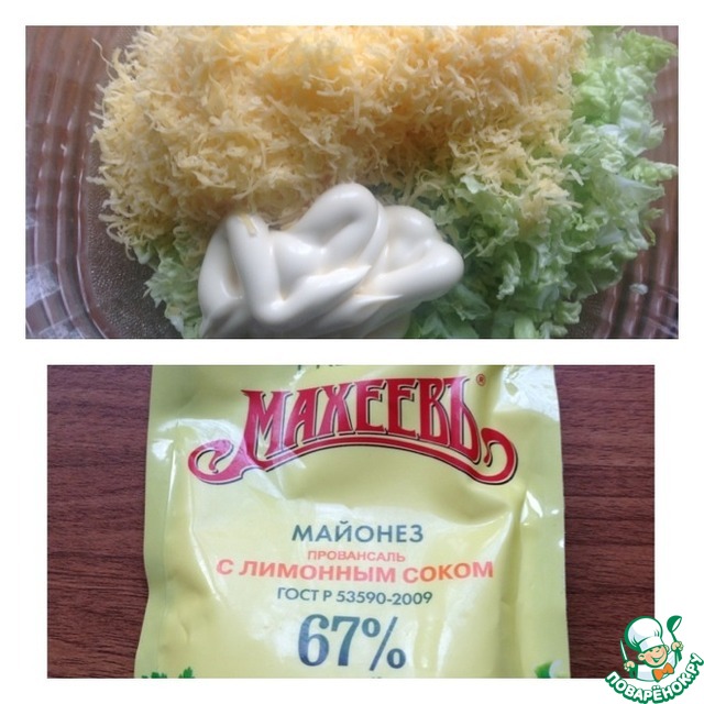 Сыр натереть на мелкой терке, добавить майонез и аккуратно перемешать